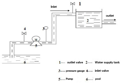 Above is a simple water supply system, the water pump draws the low water into high pool or other pool by pressure, shows water supply pressure through pressure gauge, if the system water pressure exceeds or less than the preset pressure, it will be adjusted by manually adjusting the outlet valve, to meet users requirements. The actual speed of the pump motor is constant when adjusting the water pressure by opening the valve.