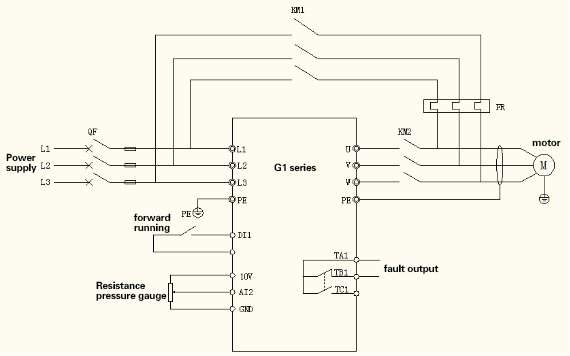 3.3 Choose the resistance pressure gauge, through the input terminal AI2 (0-10V) of inverter as the pressure feedback channel.