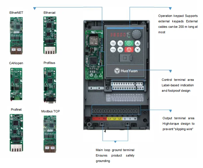 | Acceleration and deceleration time | 0-6500.0s, linear or sigmoid acceleration and deceleration curve mode, optional 4 groups of acceleration and deceleration time | ||